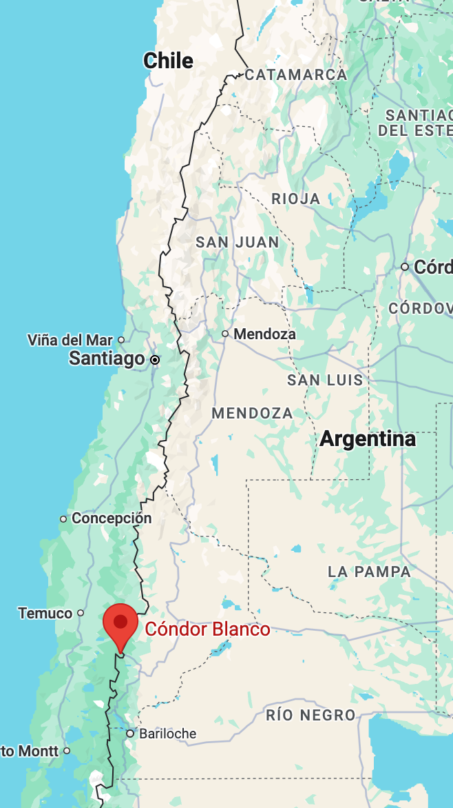 A Montanha Condor Blanco está localizada no sul do Chile, na região de Pucón, em meio à Cordilheira dos Andes. São 400 hectares de natureza exuberante, incluindo rios de geleira, cachoeiras e bosques nativos. Essa localização proporciona um ambiente ideal para se desconectar do caos urbano e se reconectar com a essência.