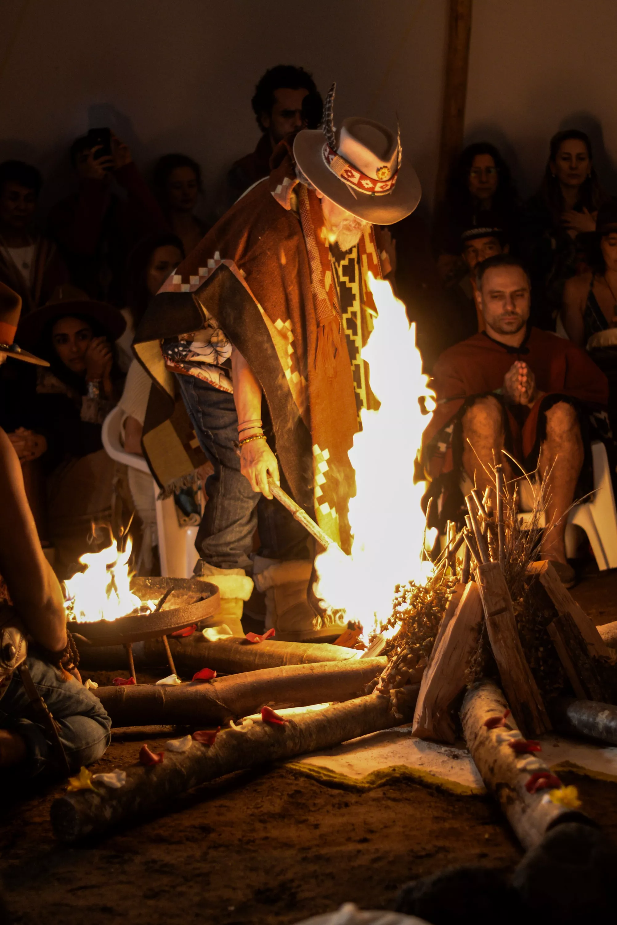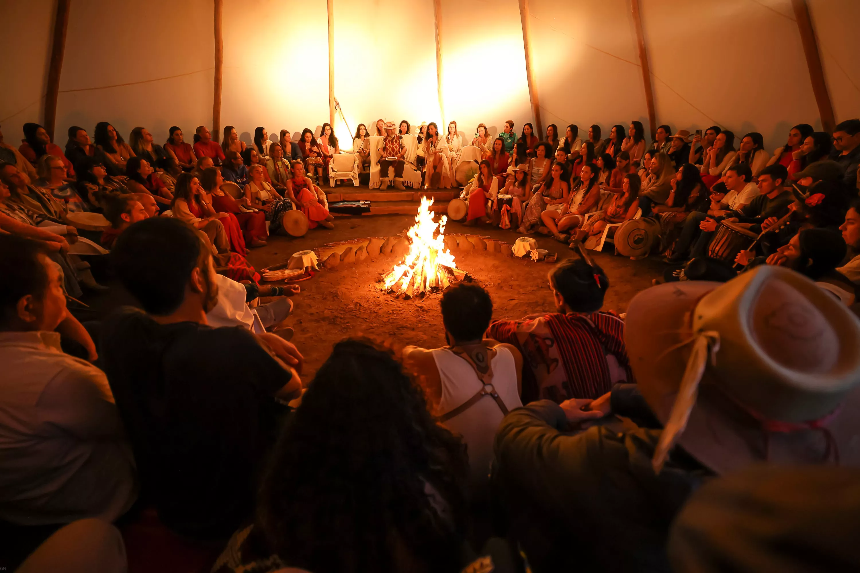 Cada buscador es sembrado junto a un árbol nativo en medio de un bosque milenario, al pie de la Cordillera de los Andes en una de las naturalezas más amigables del mundo, donde permanecerá en un círculo hecho con rezos y en un profundo ascesis que le permitirá entrar en intimidad contigo mismo y rescatar tu naturaleza salvaje, purificar tu historia, darle un nuevo significado a tus vínculos y encontrar un sentido renovado para tu vida, transformando tu visión interna. Y, a pesar de estar solo en retiro, estarás conectado y cerca de todo el grupo de buscadores que subieron juntos, recibiendo el apoyo de toda la Tribu que apoya el proceso a través de cantos, ofrendas, vigilias en el tipi de fuego - que permanece iluminado de principio a fin y sólo se apaga después de la ceremonia de bendición y celebración, cuando es posible ver el brillo en los ojos y el alma de cada persona que regresa de este Rito de Paso transformado.